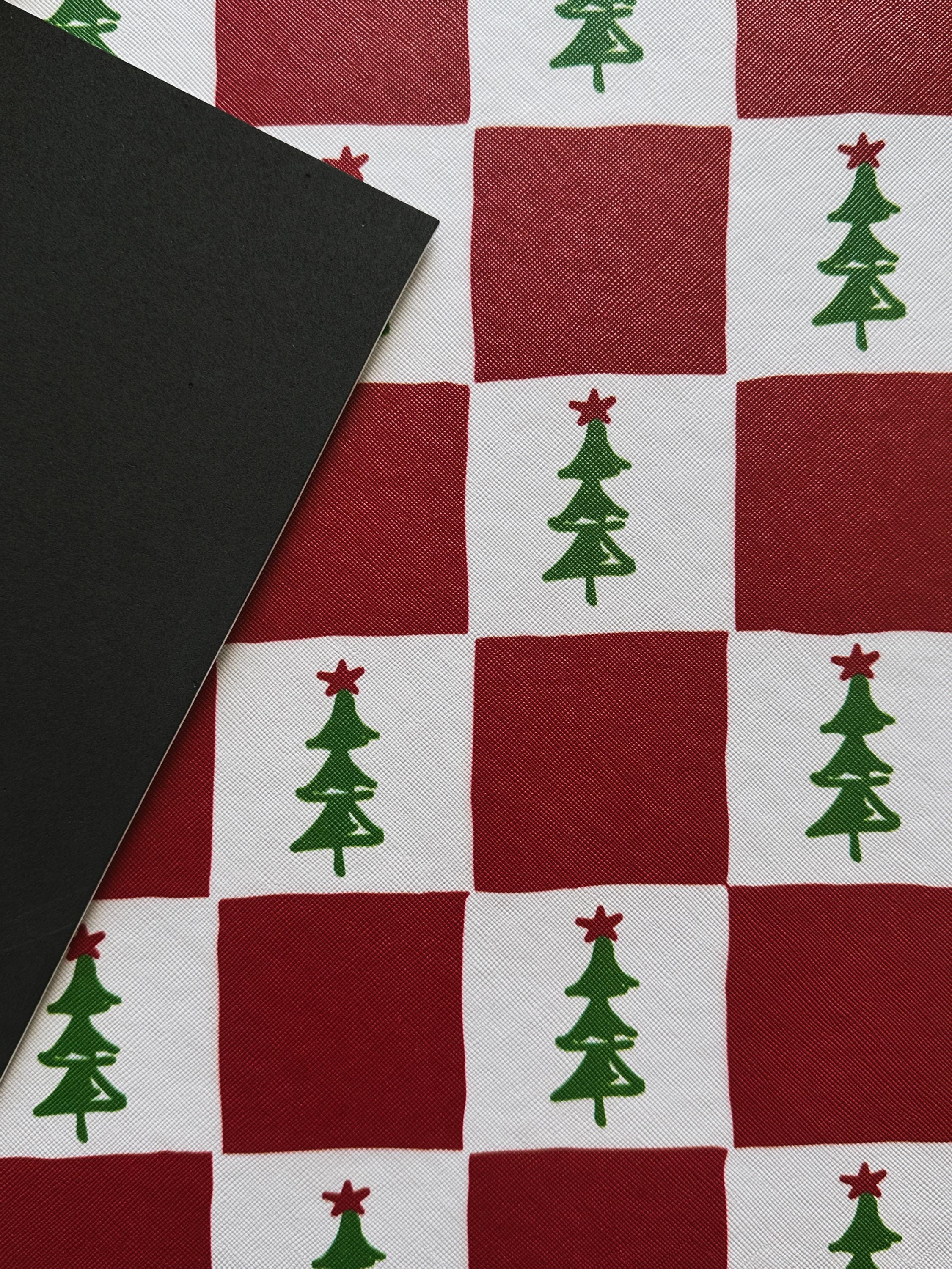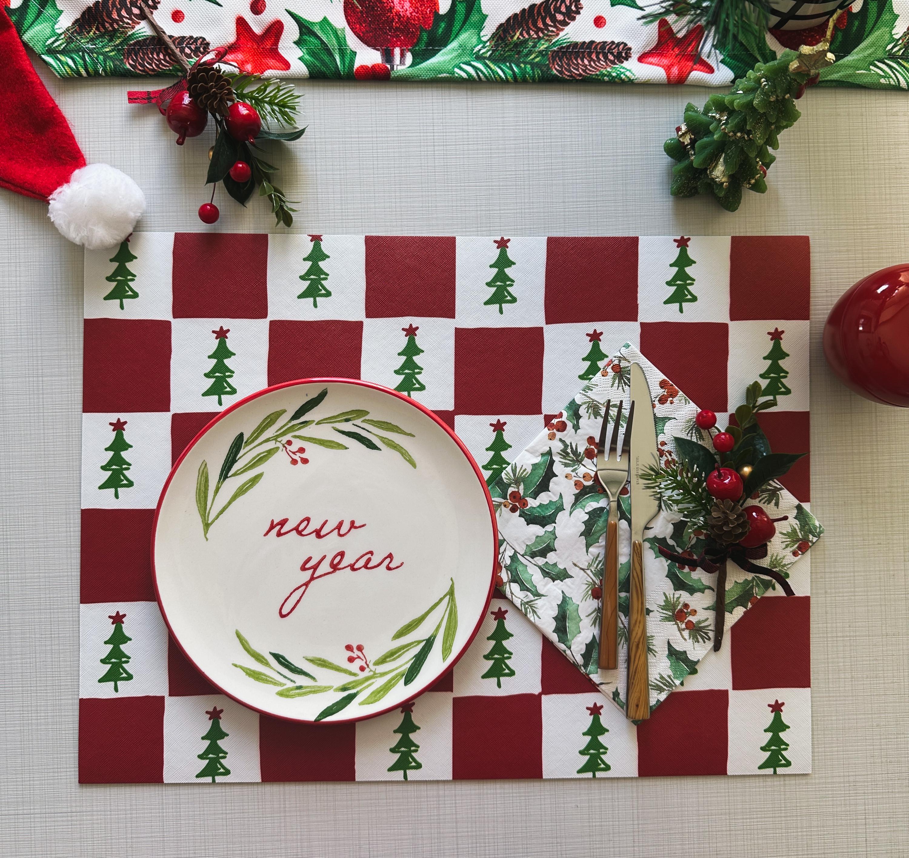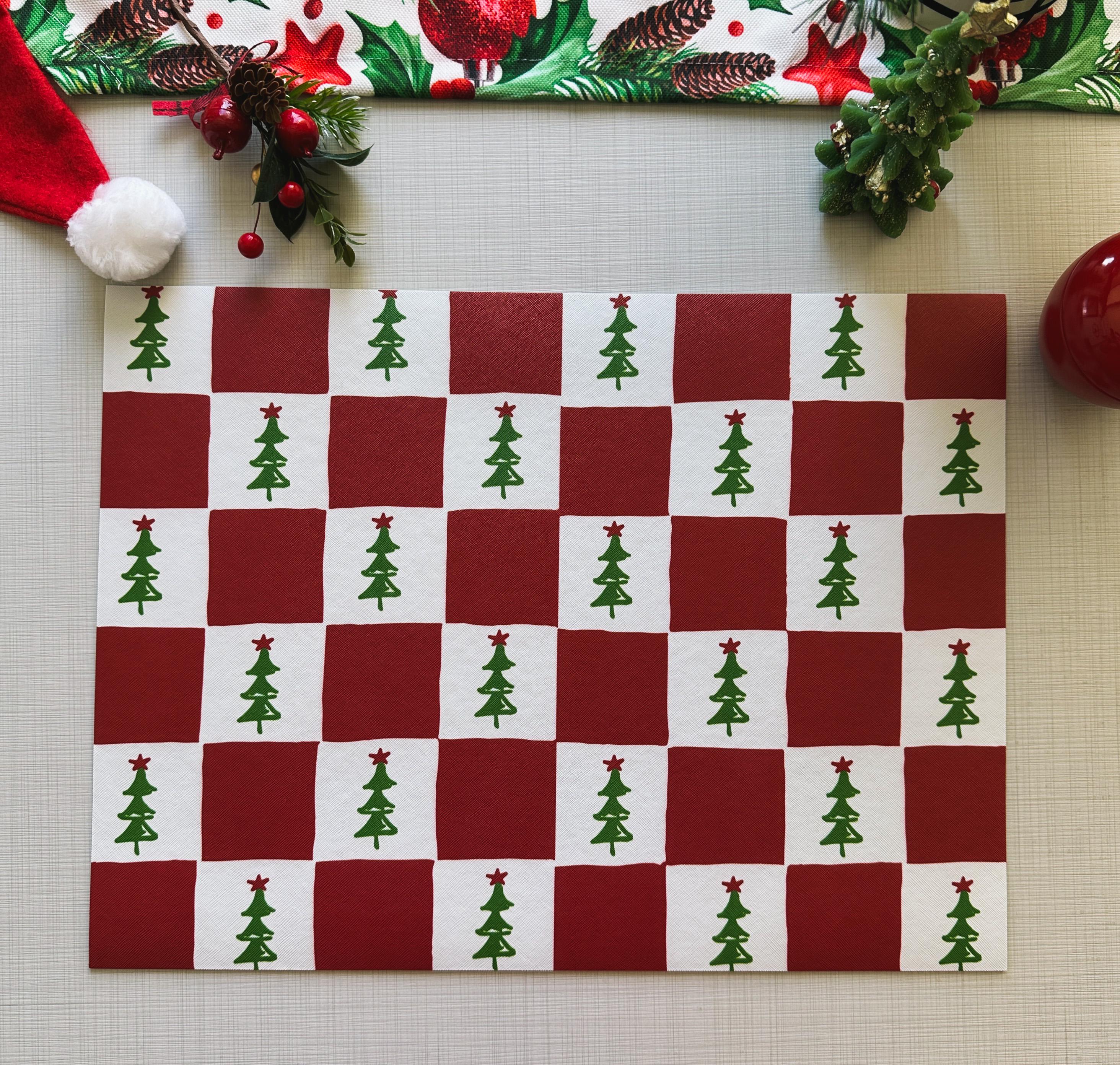 Checkered Christmas Tree Placemat: Waterproof PU Leather Holiday Decor