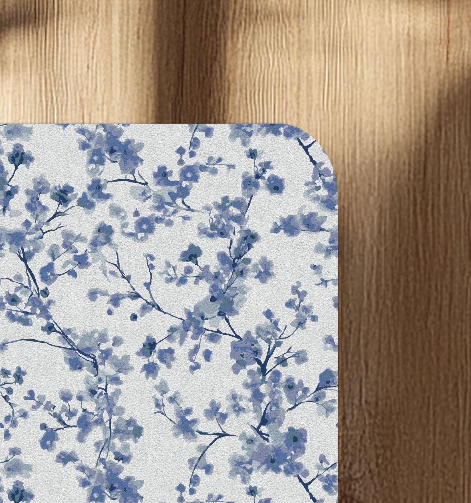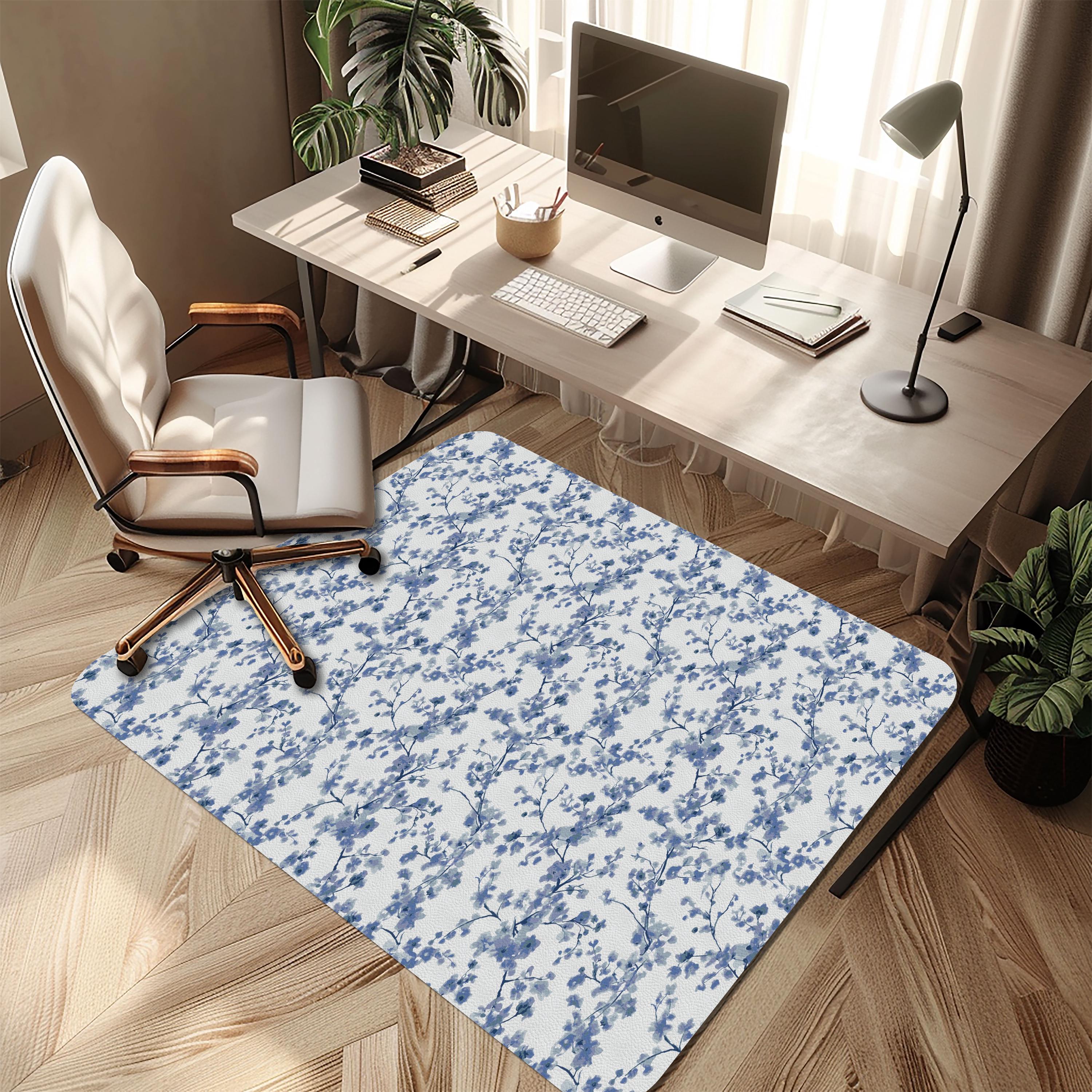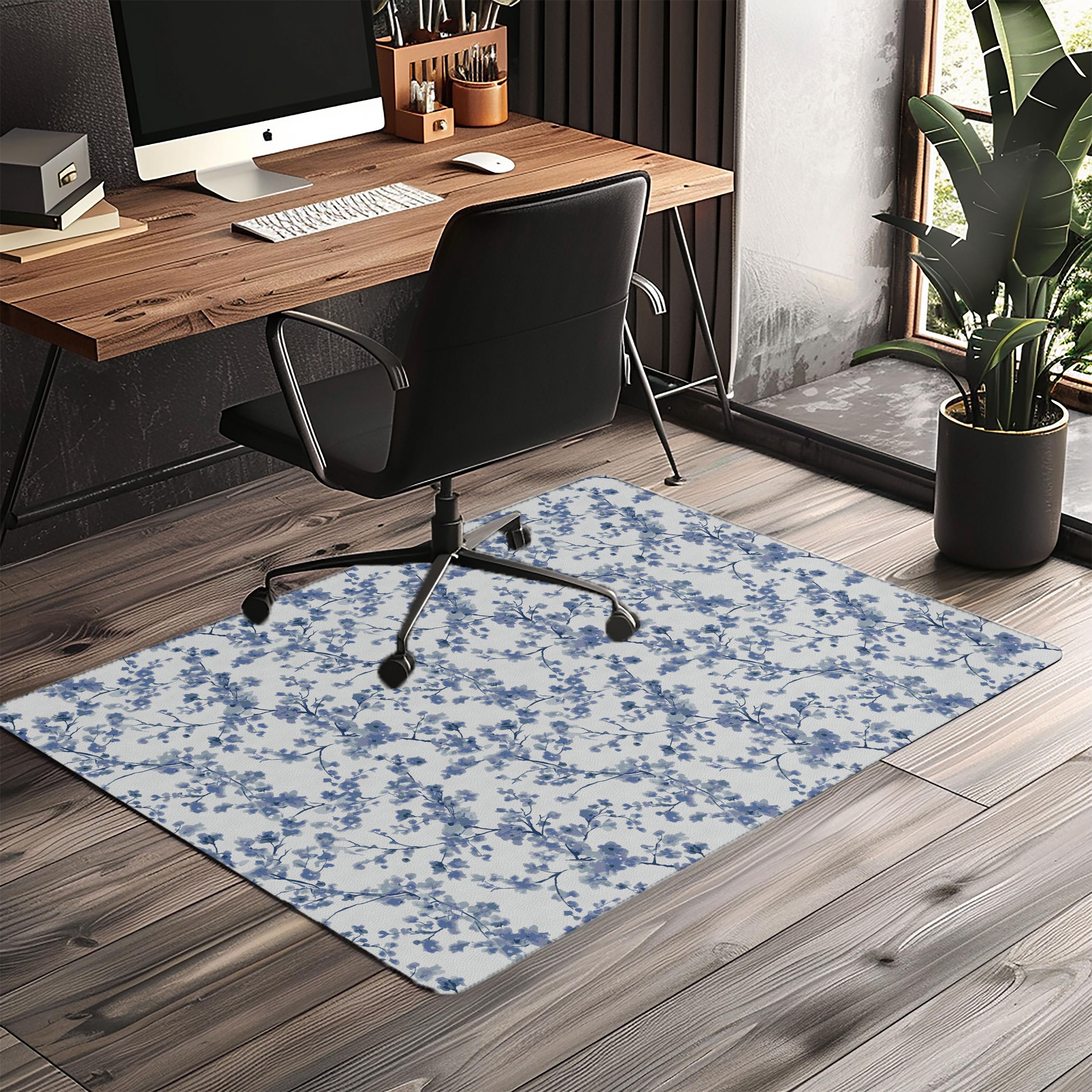 Blue Cherry Blossom Chair Mat: Watercolor Sakura Floral Desk Protector