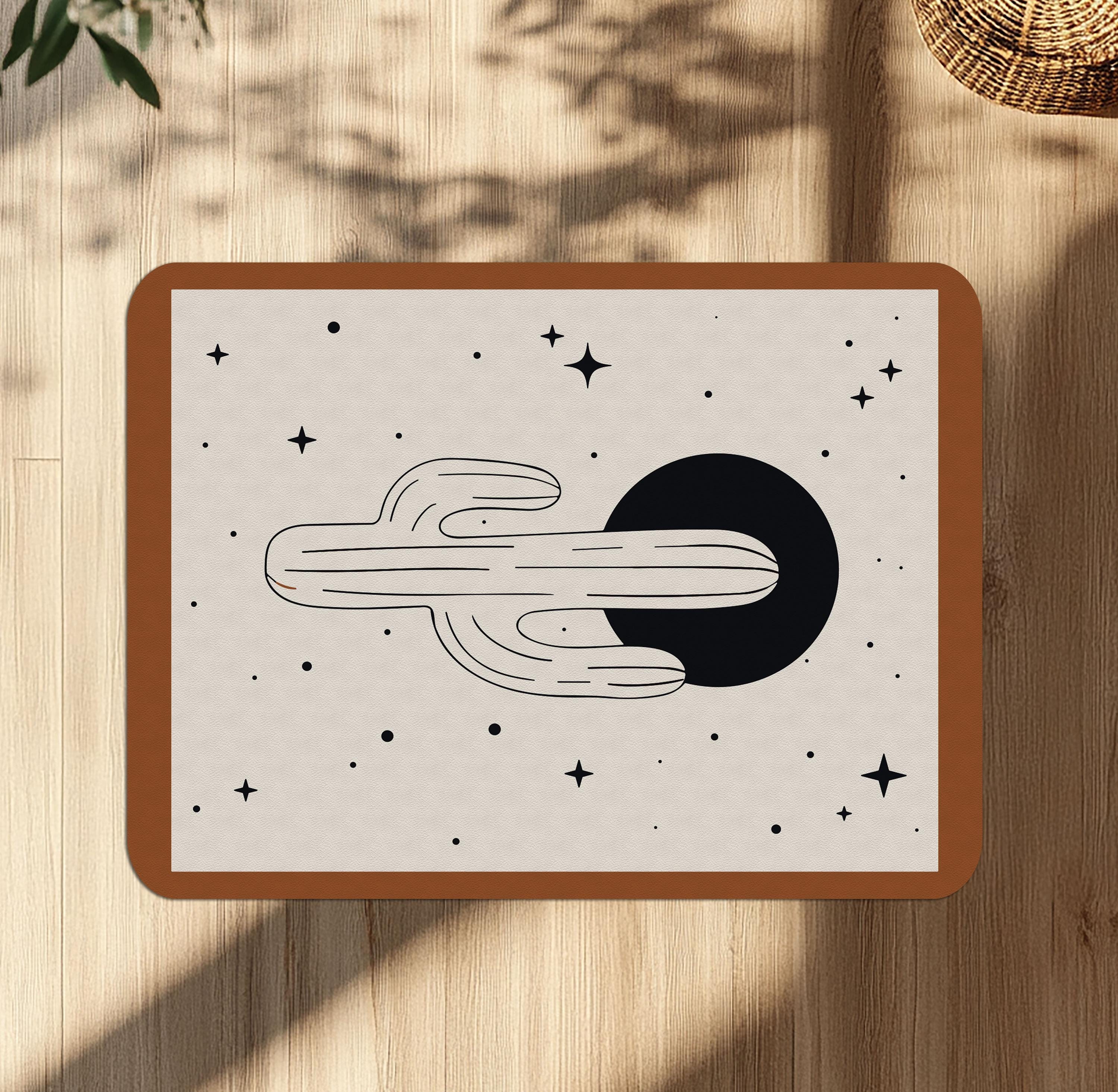 Boho Cactus Chair Mat: Minimal Desert Illustration, Rustic Home Decor