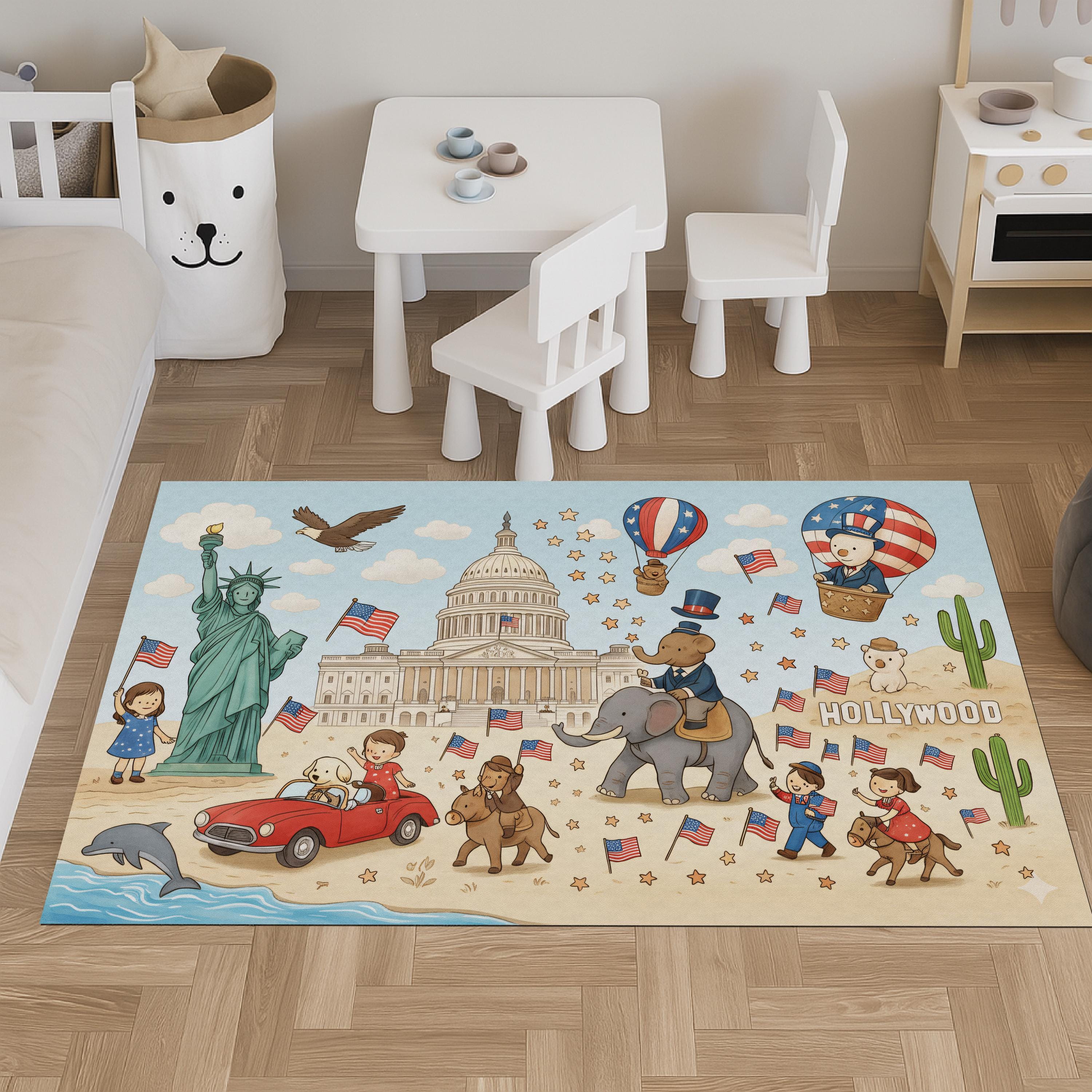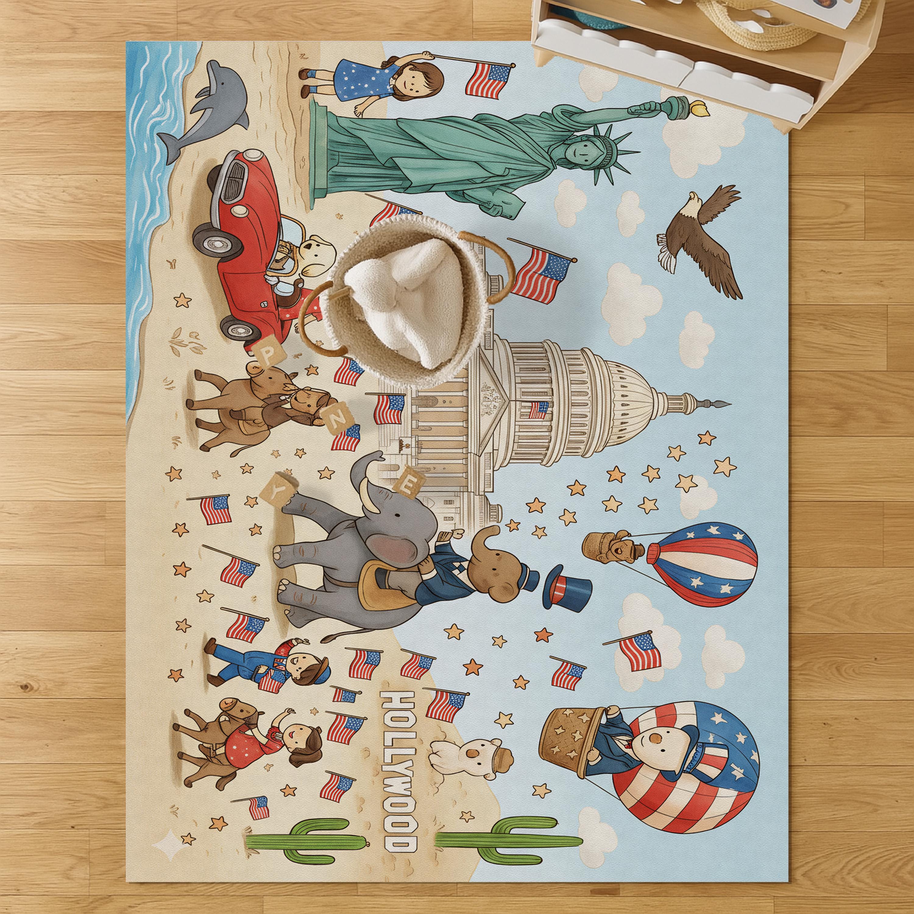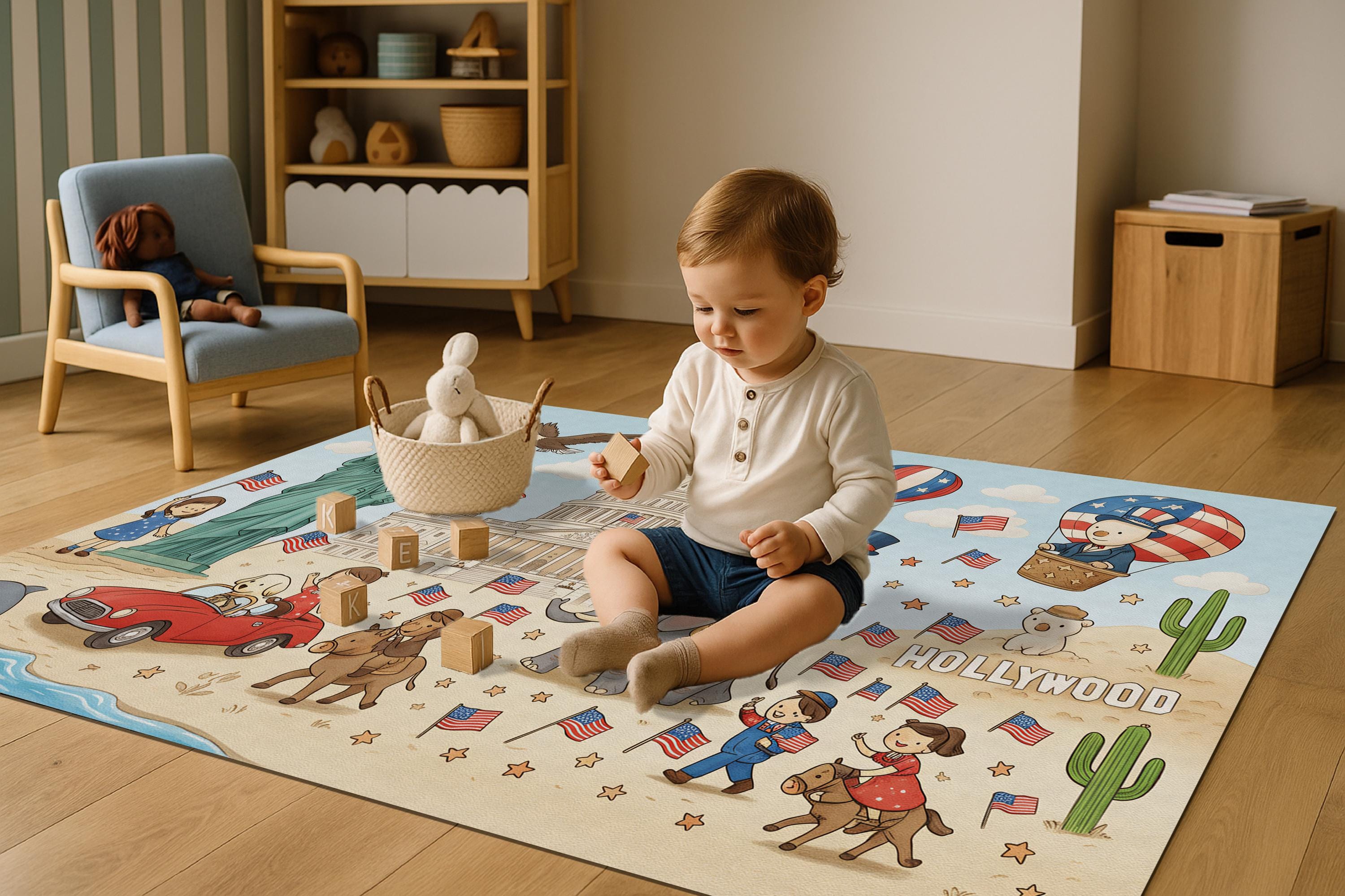 Adventure-Filled USA Themed Kids Play Mat - Educational & Fun!