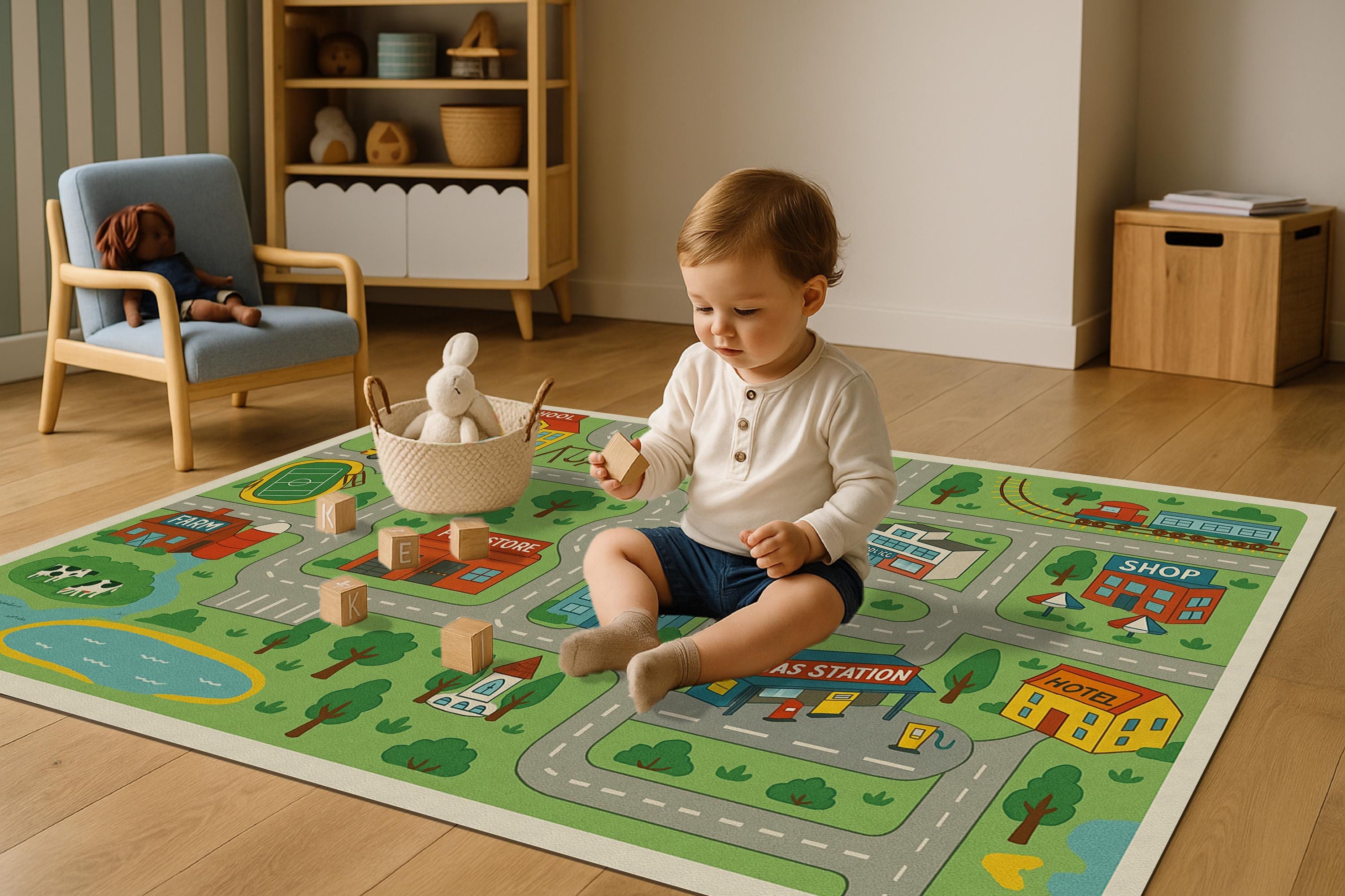 City Road Map Play Mat: PU Leather Car Rug for Kids