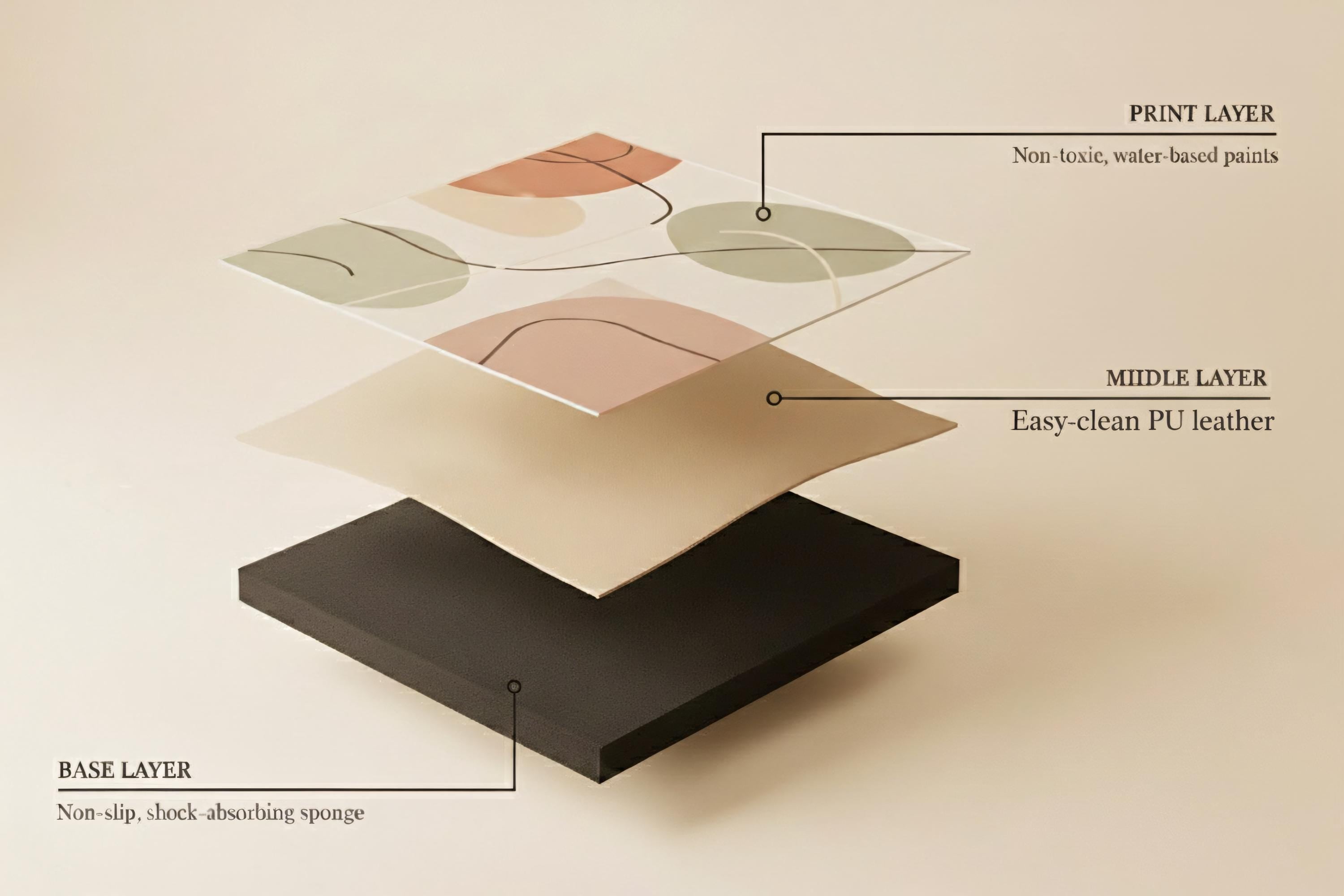 Boho Rainbow Nursery Play Mat: Soft PU Leather, Non-Slip
