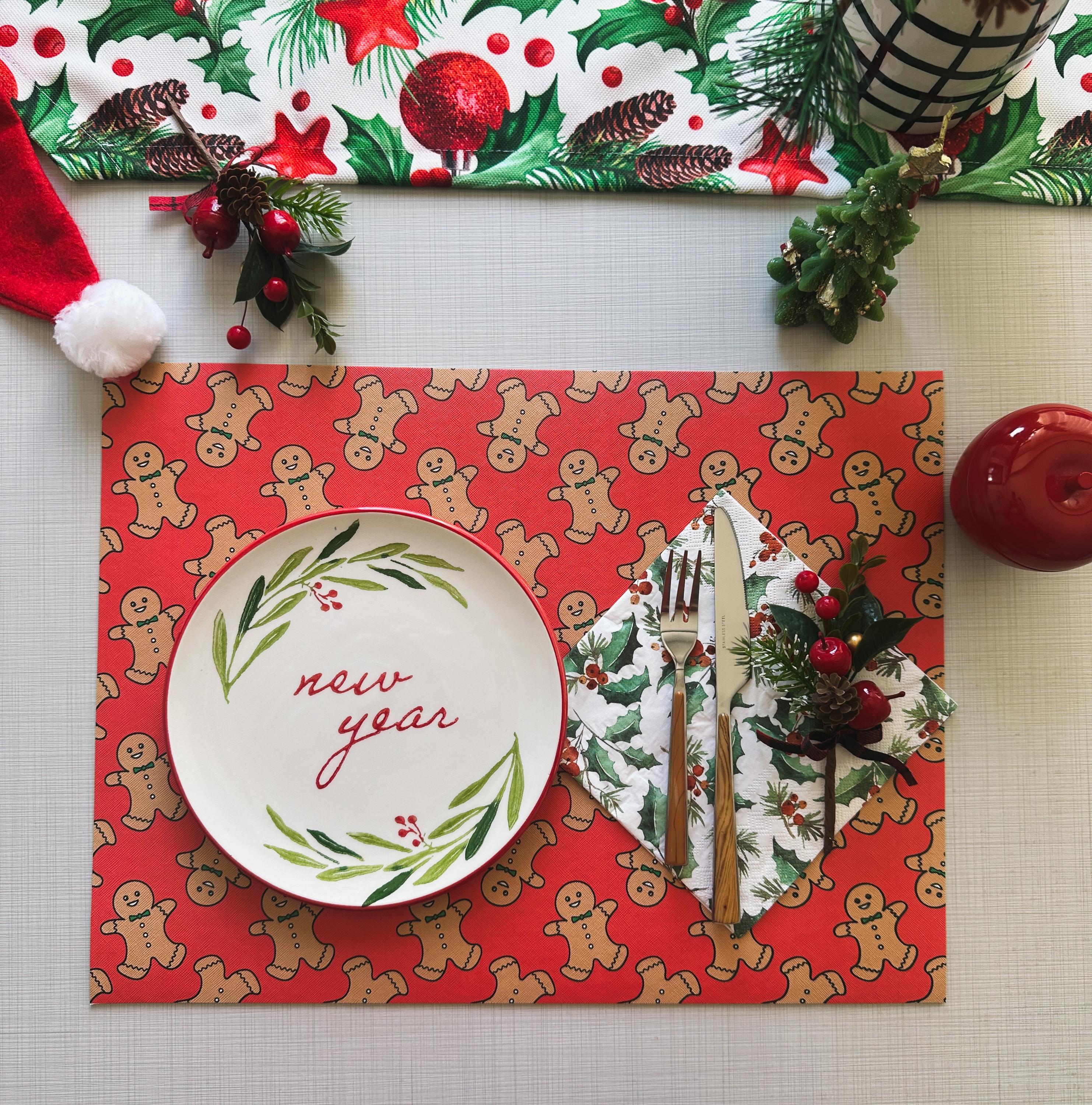 Gingerbread Man Christmas Placemat: Waterproof Faux Leather Holiday Decor