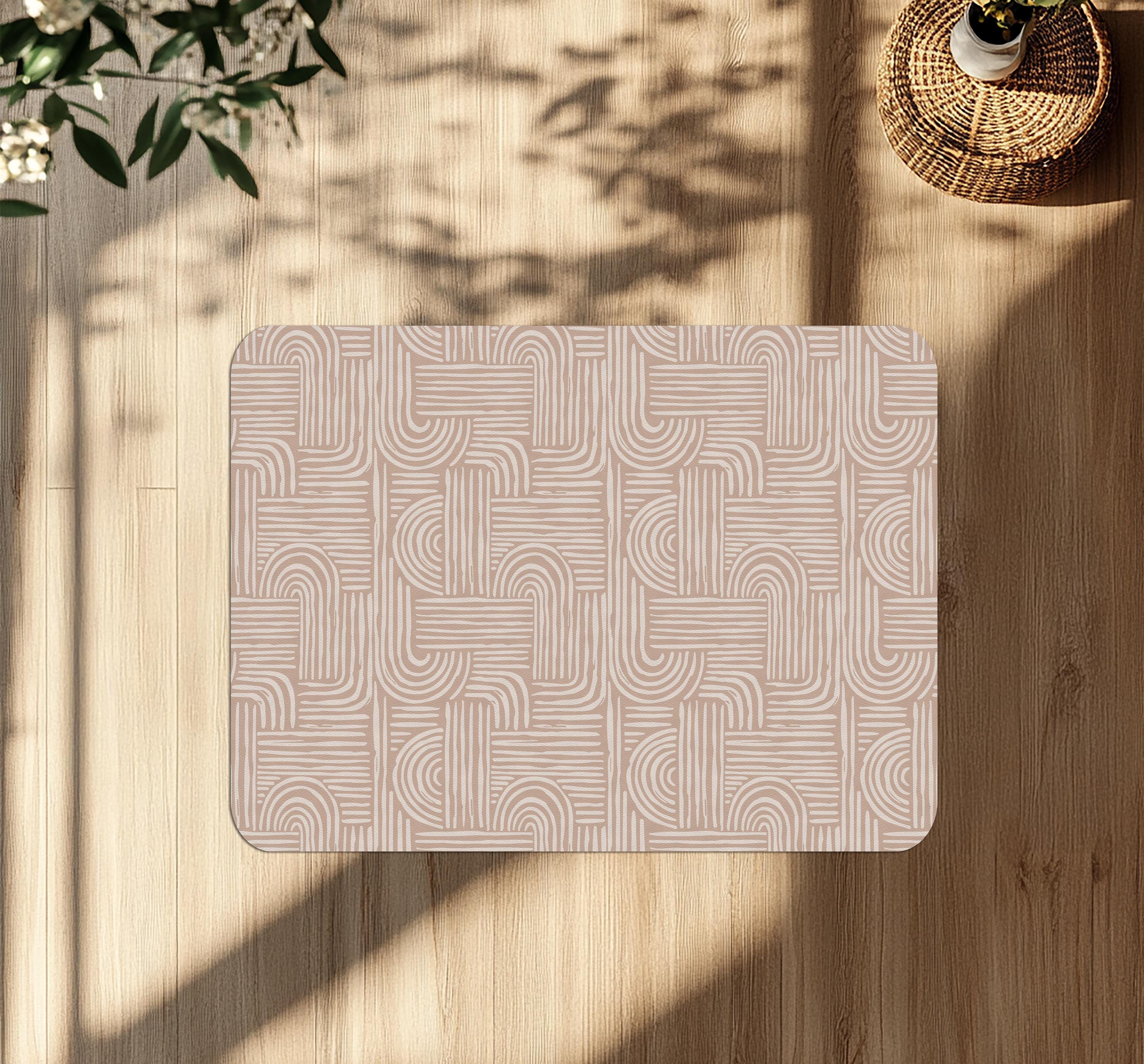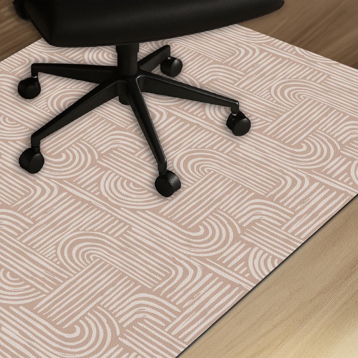 Minimal Nude Geometric Chair Mat – Modern Line Pattern Floor Protector for Scandinavian or Boho Home Office Decor
