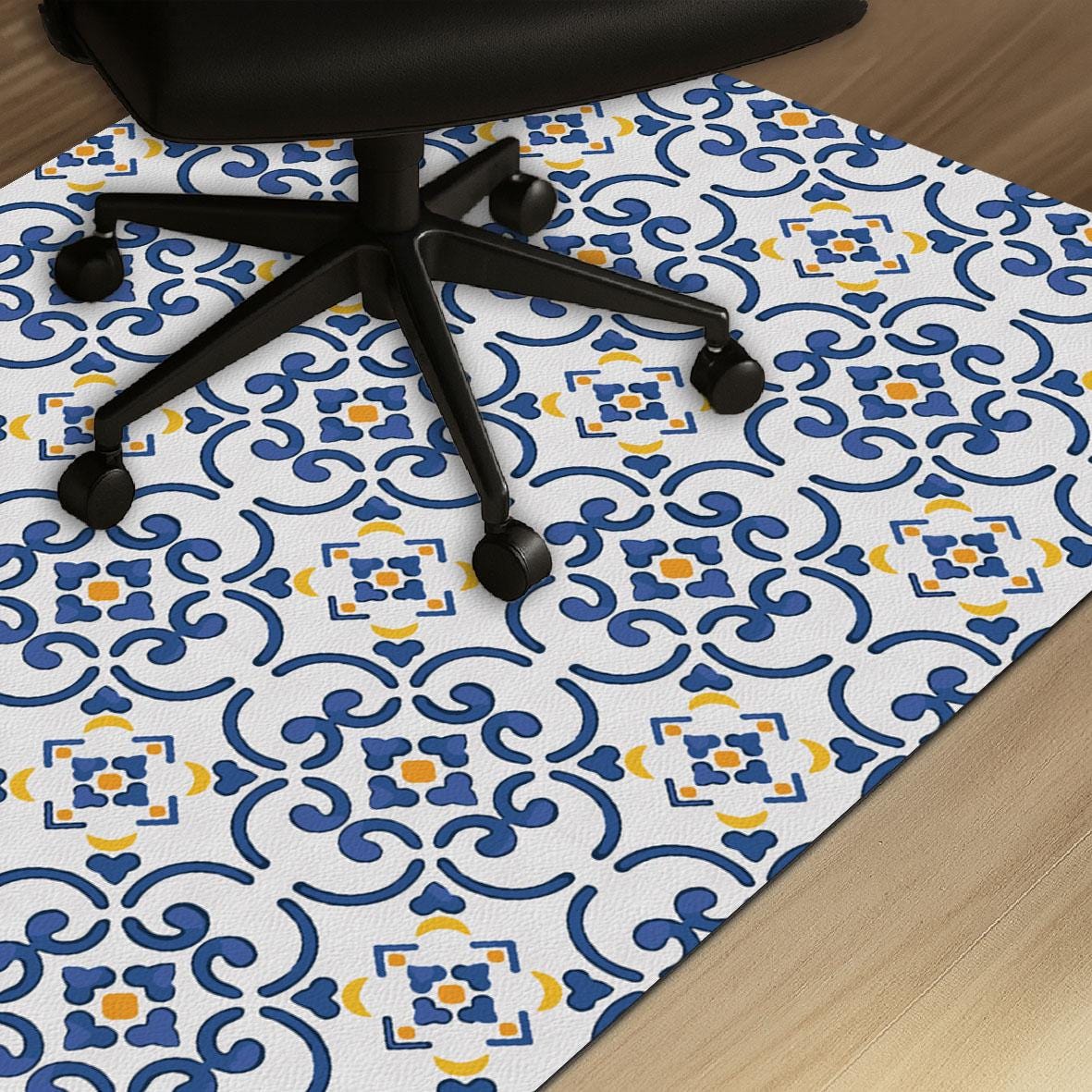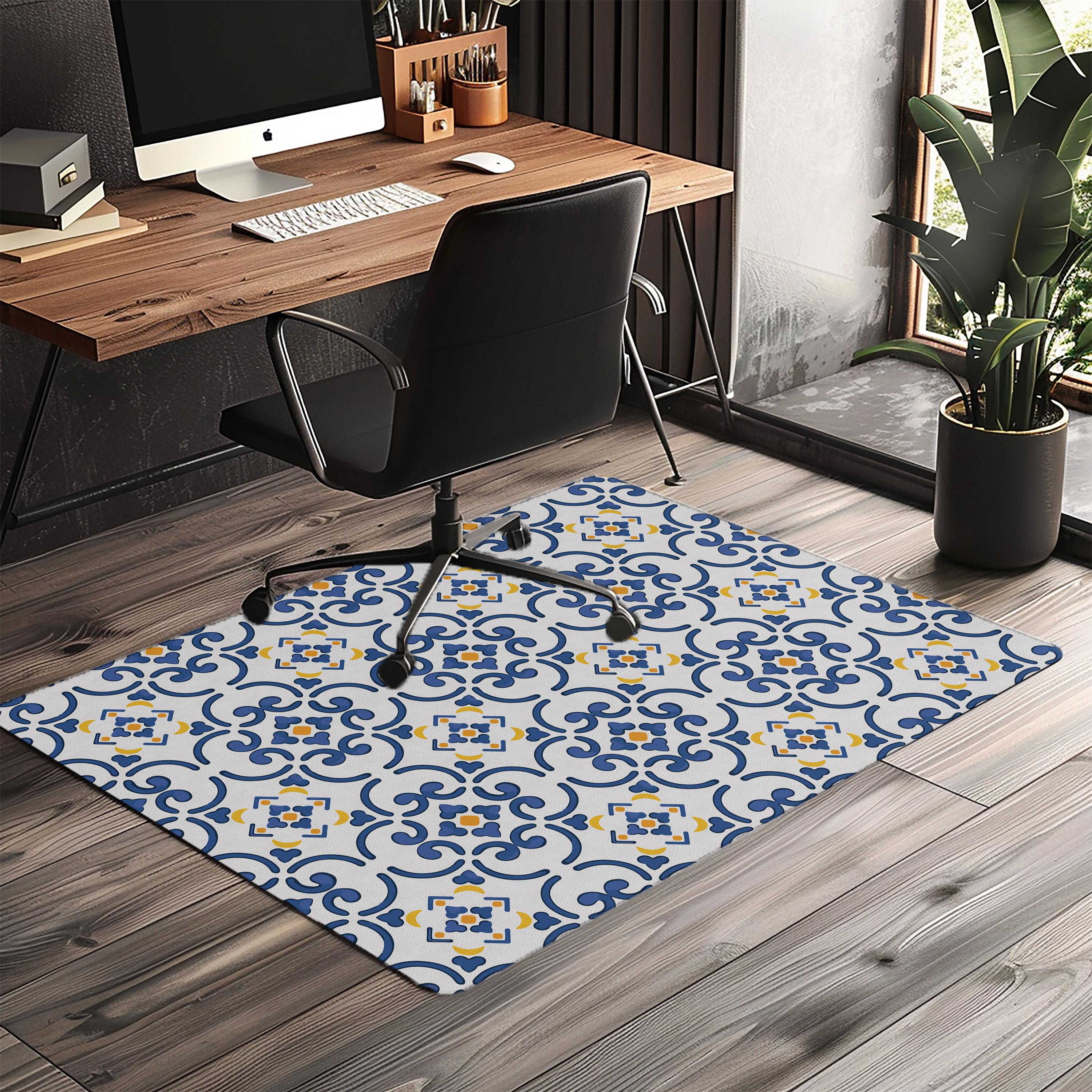Mediterranean Tile Office Chair Mat: Non-Slip PU Leather Floor Protector