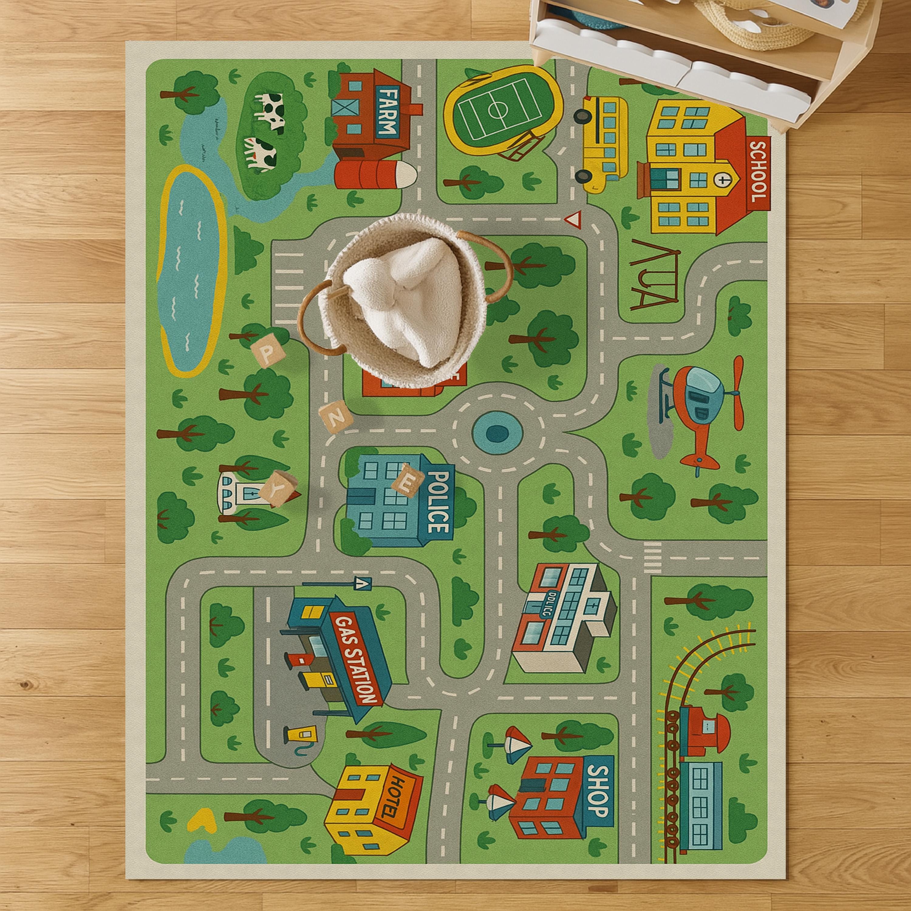 Kids Road Map Play Mat: PU Leather City Rug, Nursery Decor