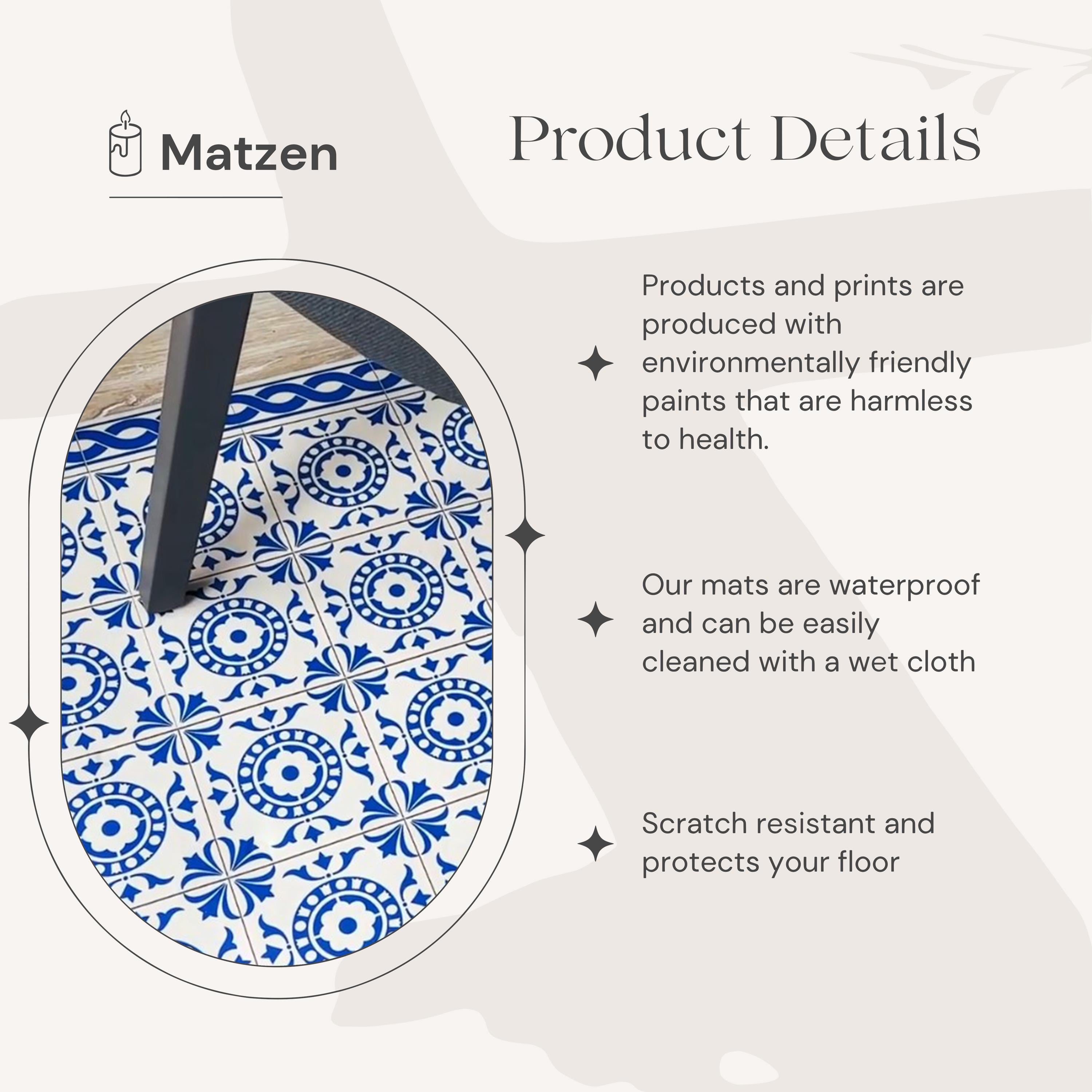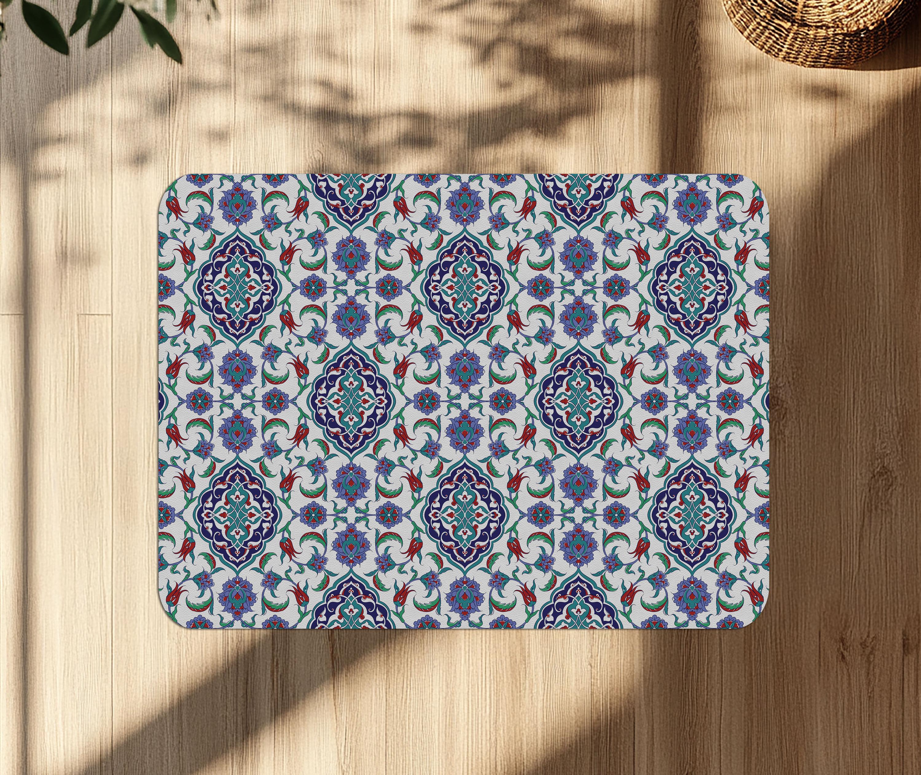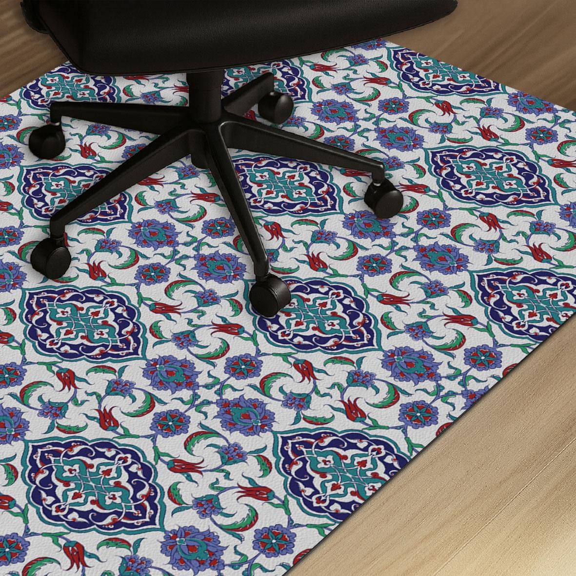 Oriental Tile Office Chair Mat: Non-Slip PU Leather Floor Protector