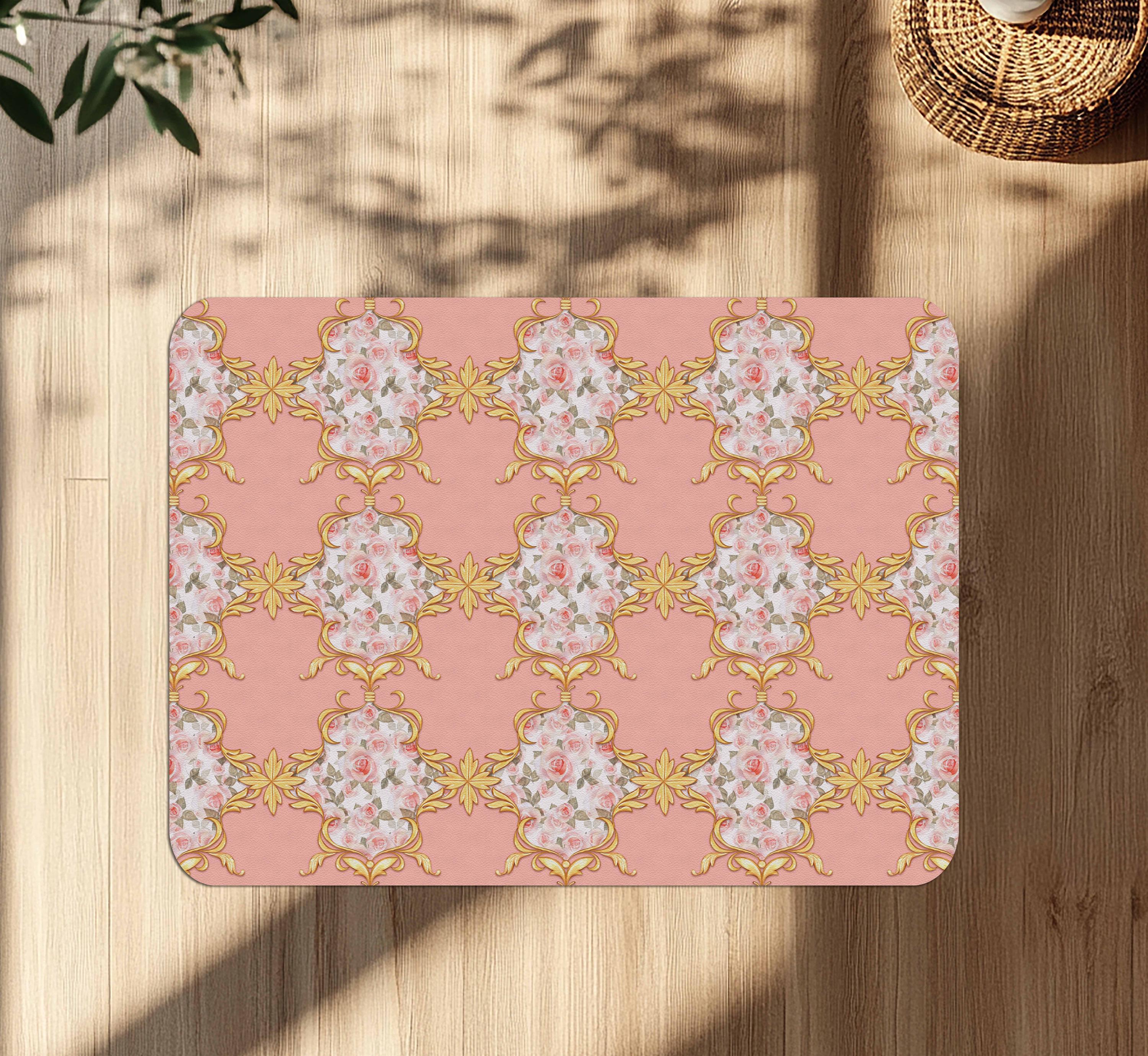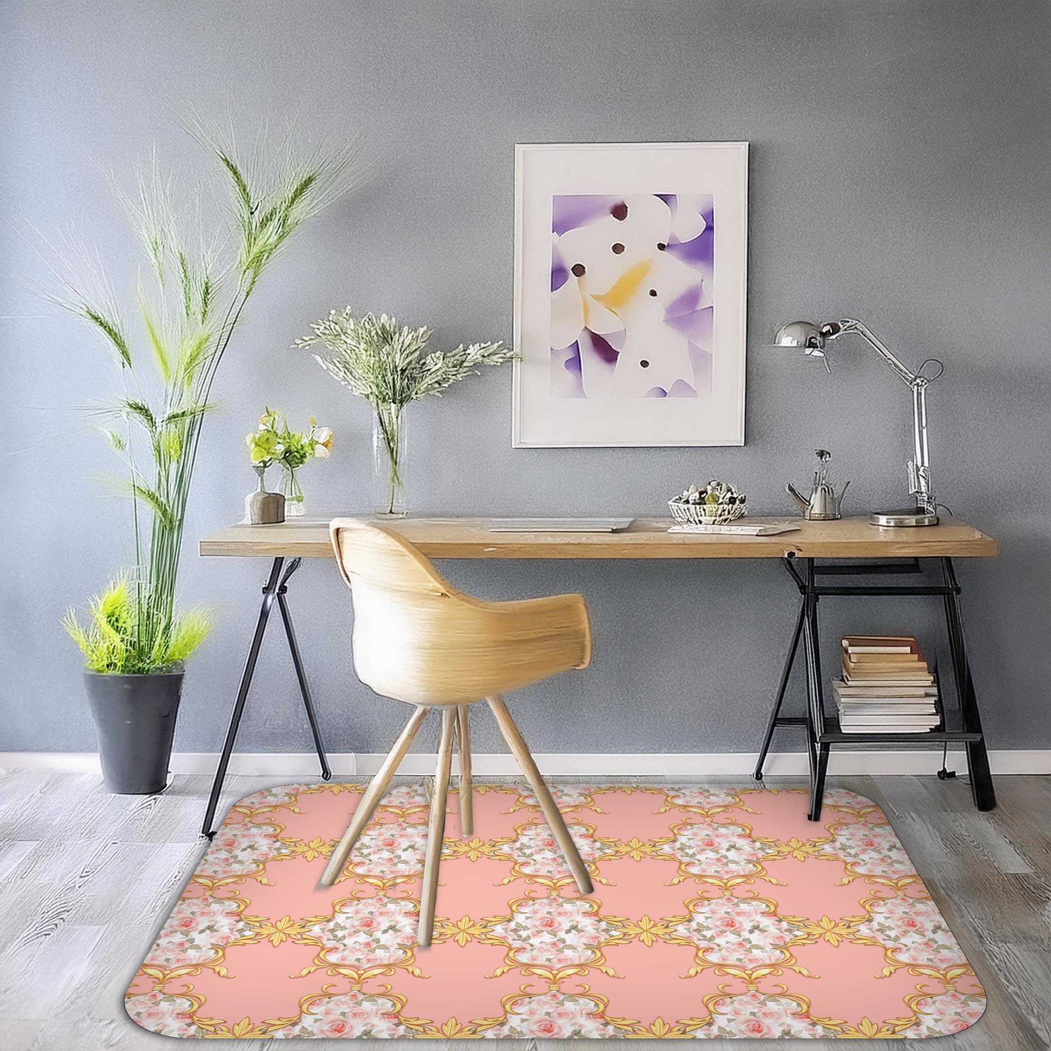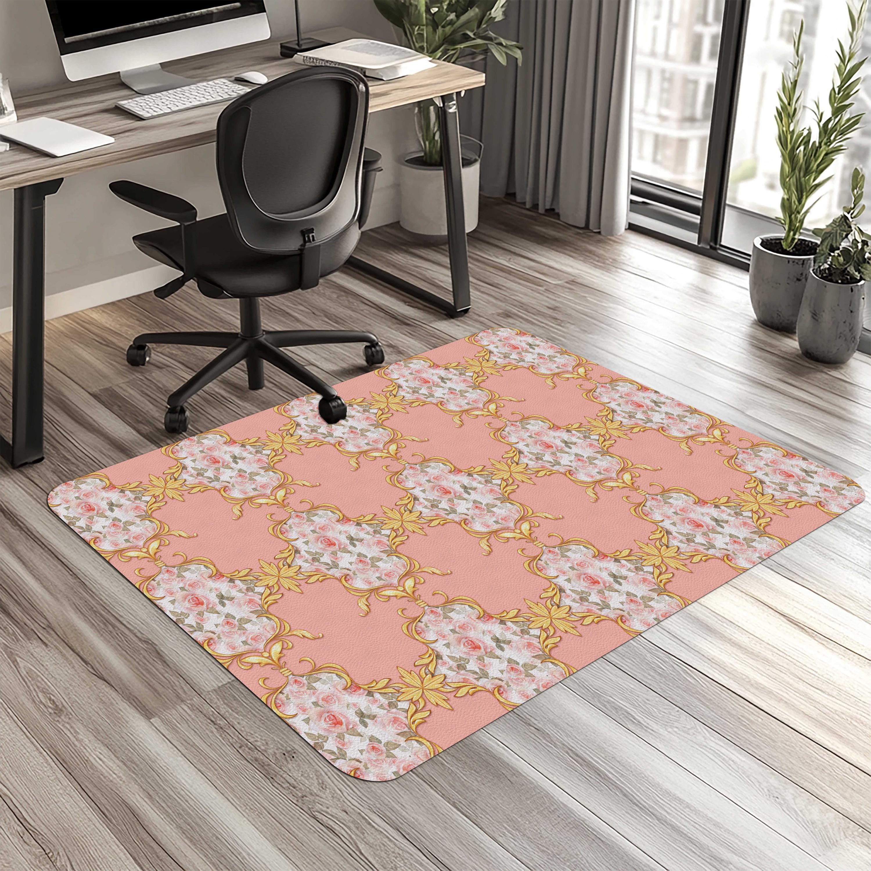 Pink and Gold Baroque Chair Mat: Non-Slip Floor Protector