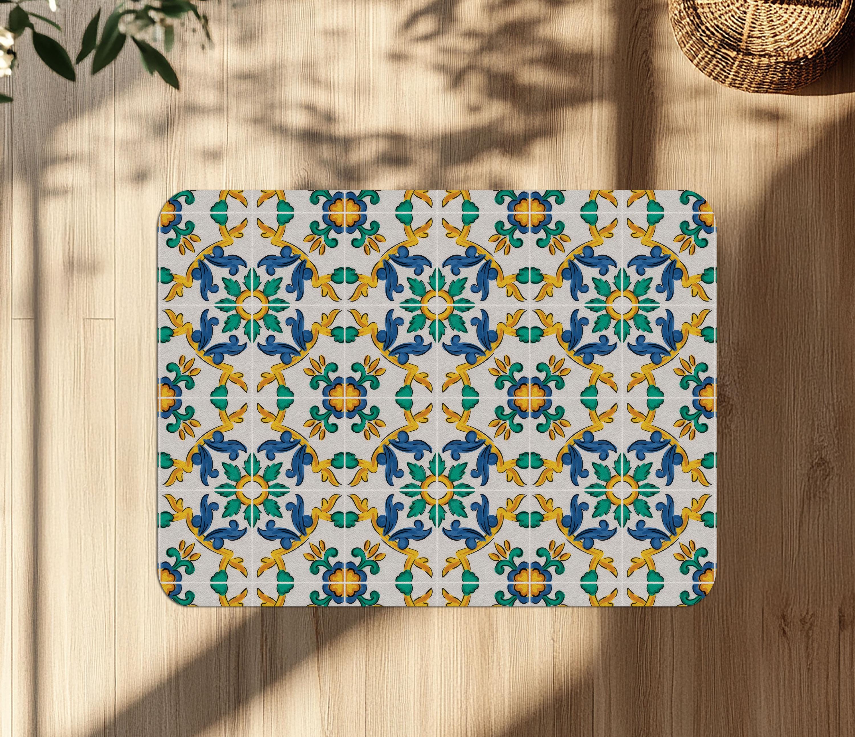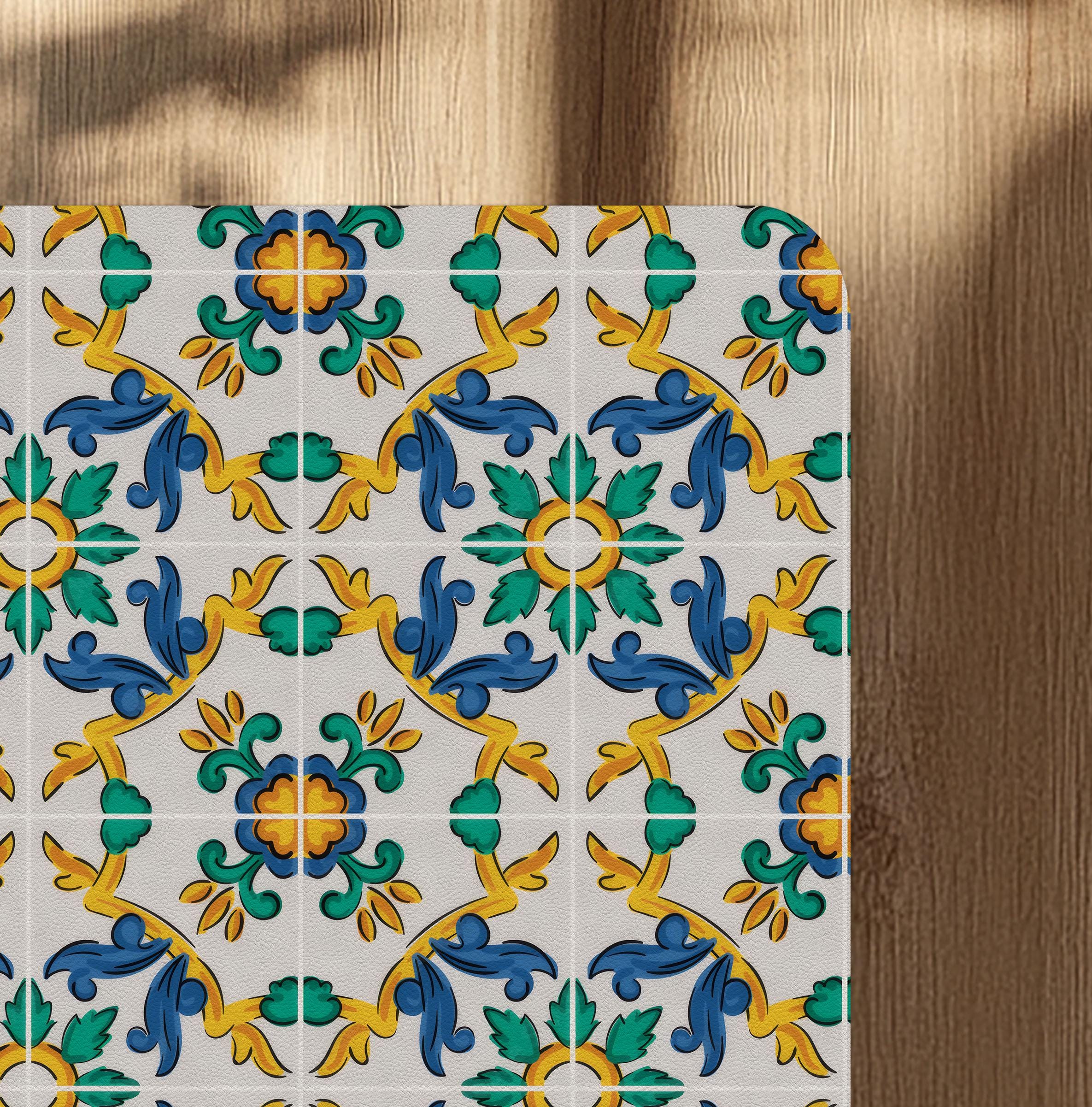Sicilian Carretto Tile Chair Mat: Colorful Italian Ceramic Floor Protector