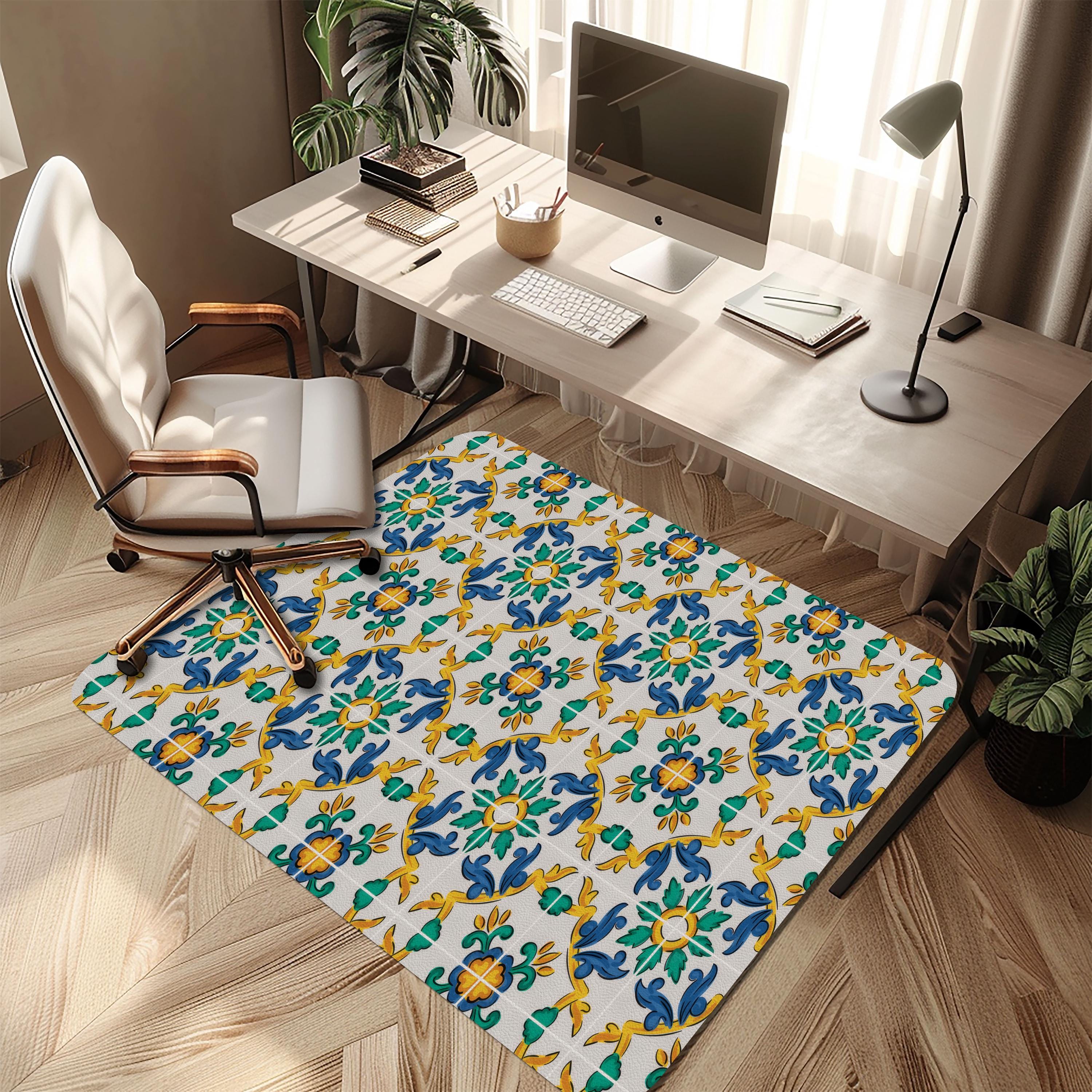 Sicilian Carretto Tile Chair Mat: Mediterranean Home Office Decor