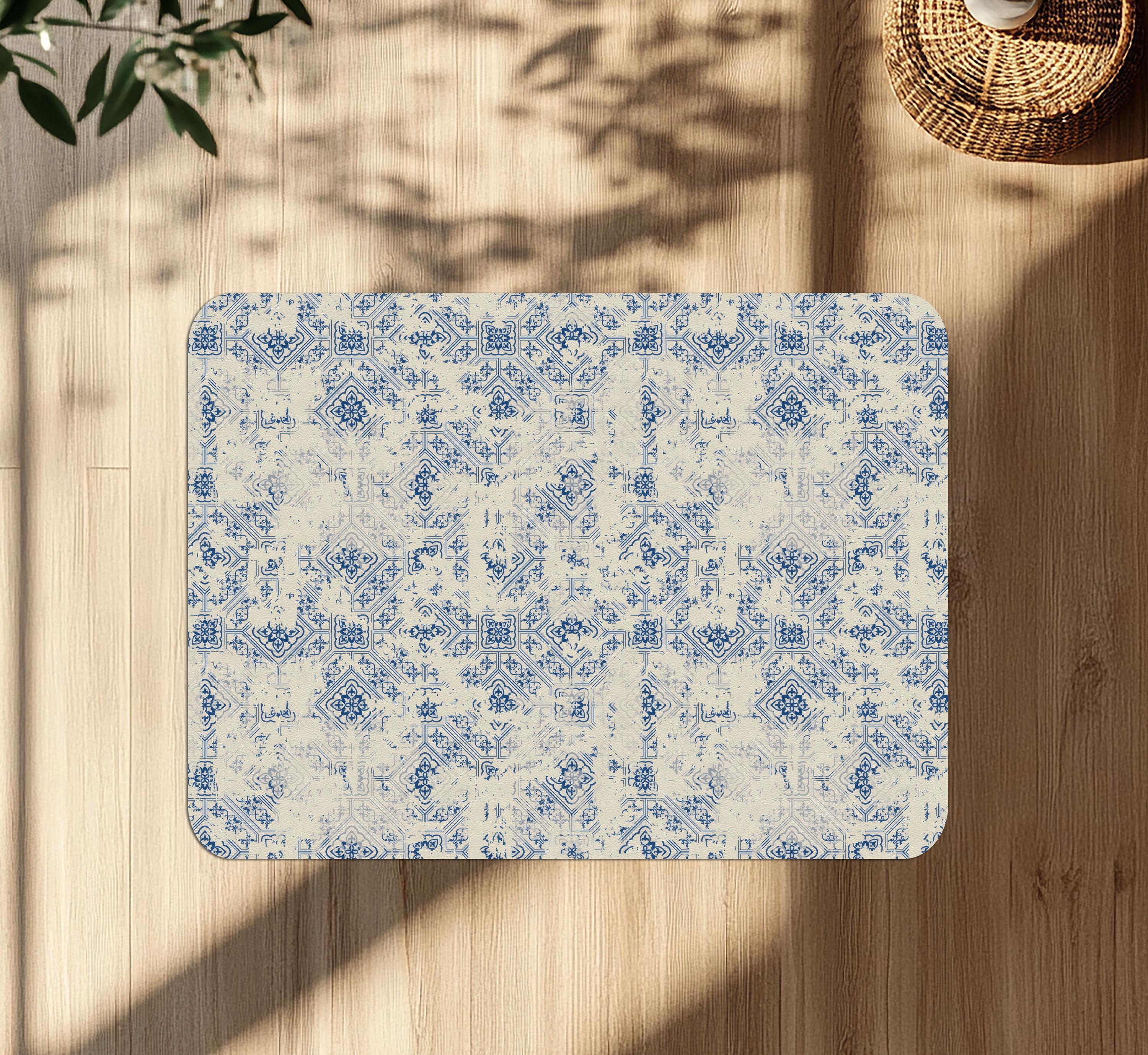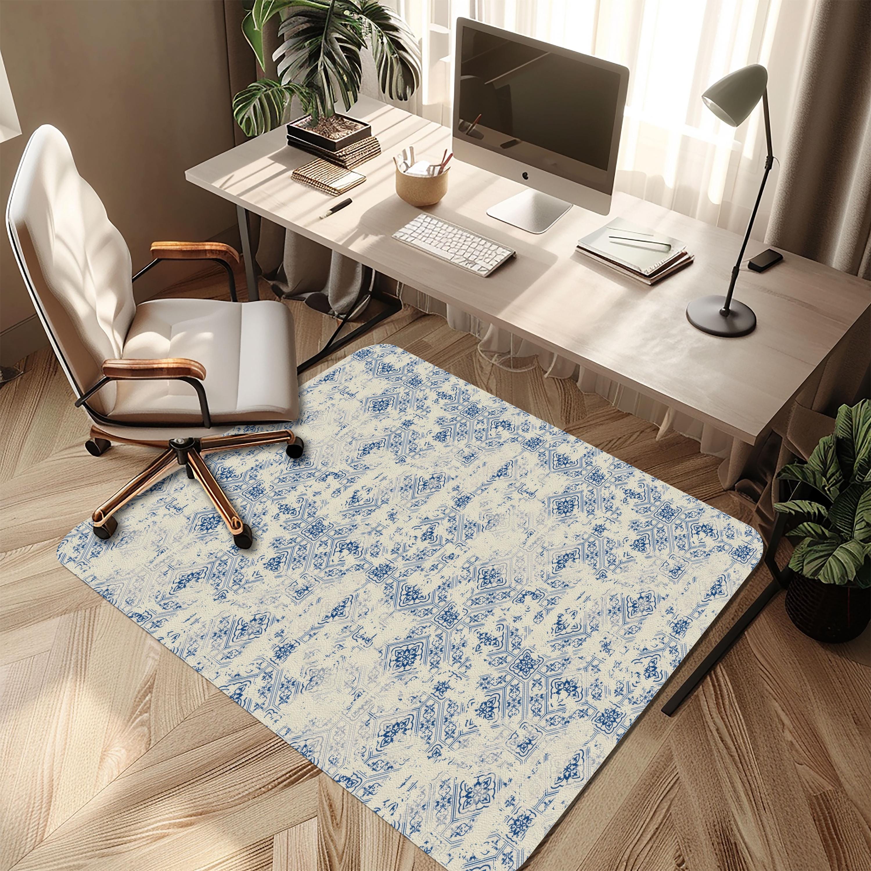 Vintage Patchwork Chair Mat: Distressed Blue Tile Floor Protector