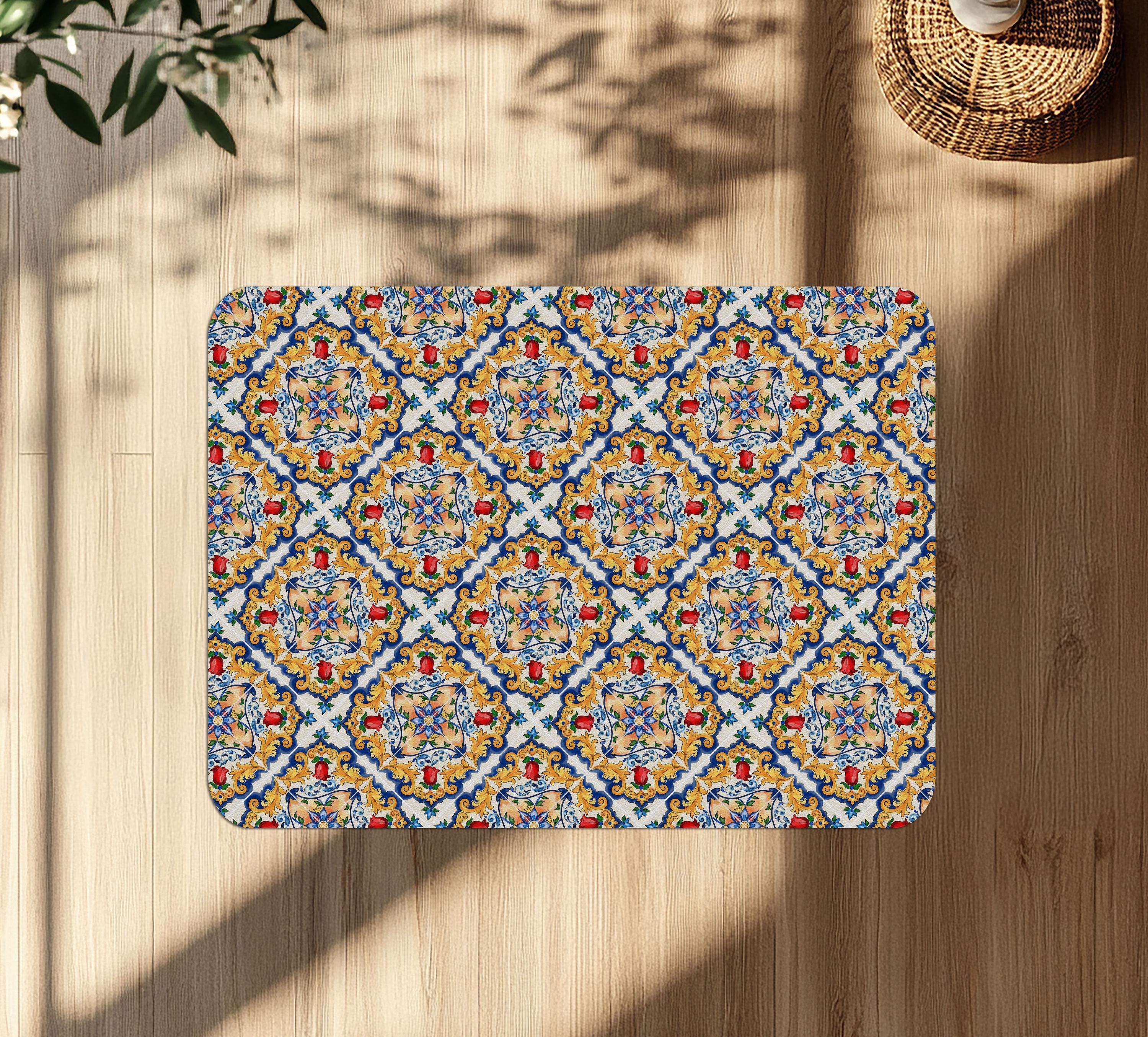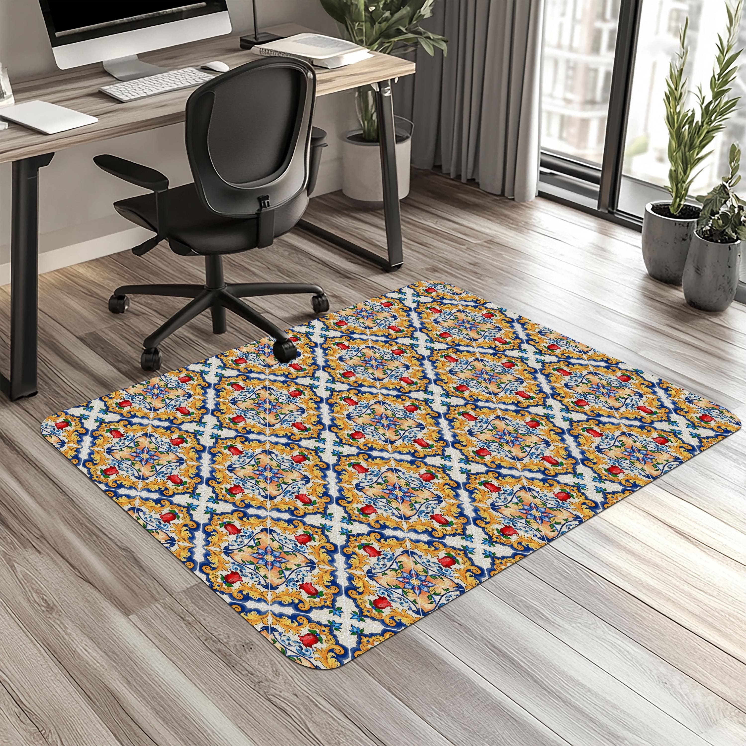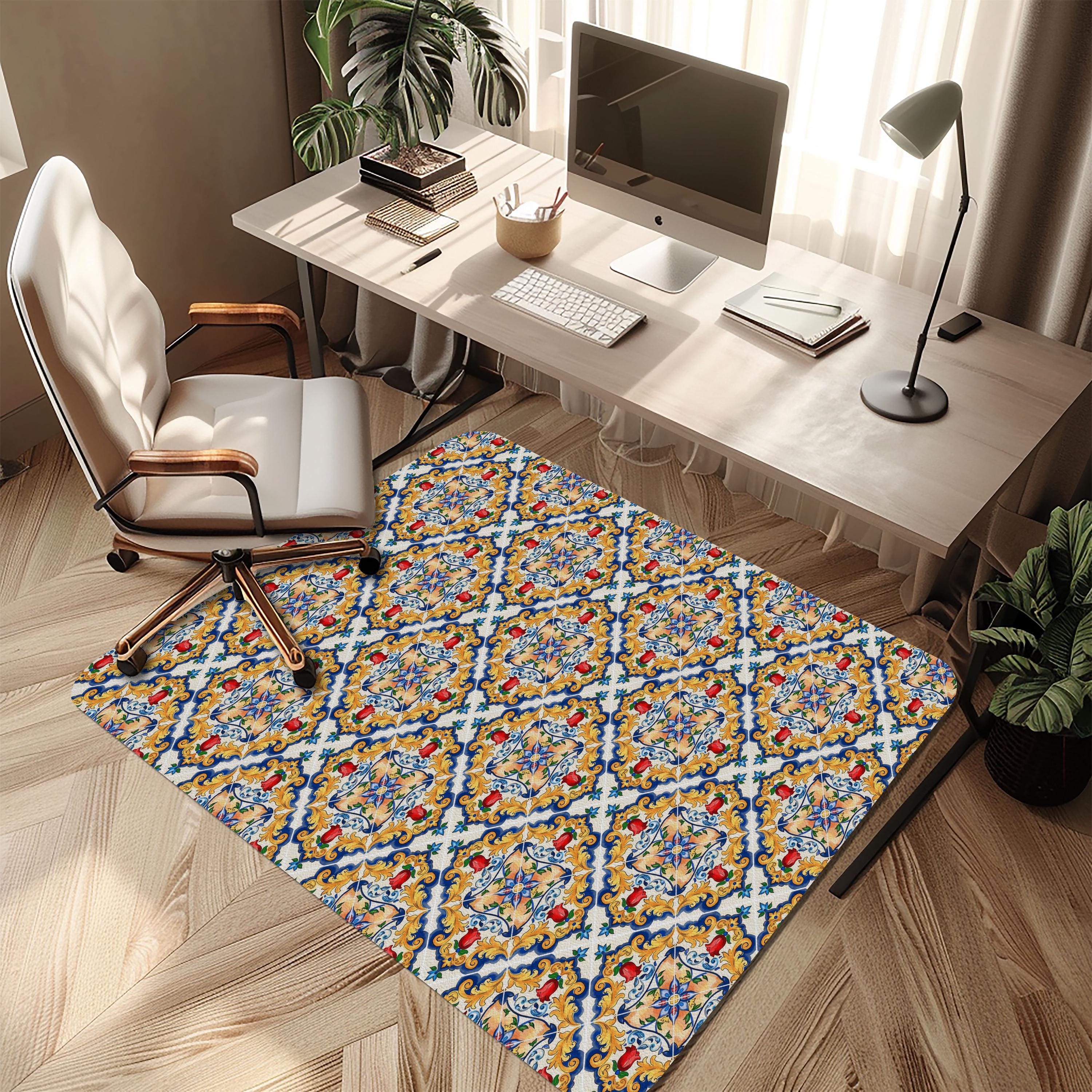 Sicilian Tile Chair Mat: Mediterranean Ceramic Design, Office Floor Protector